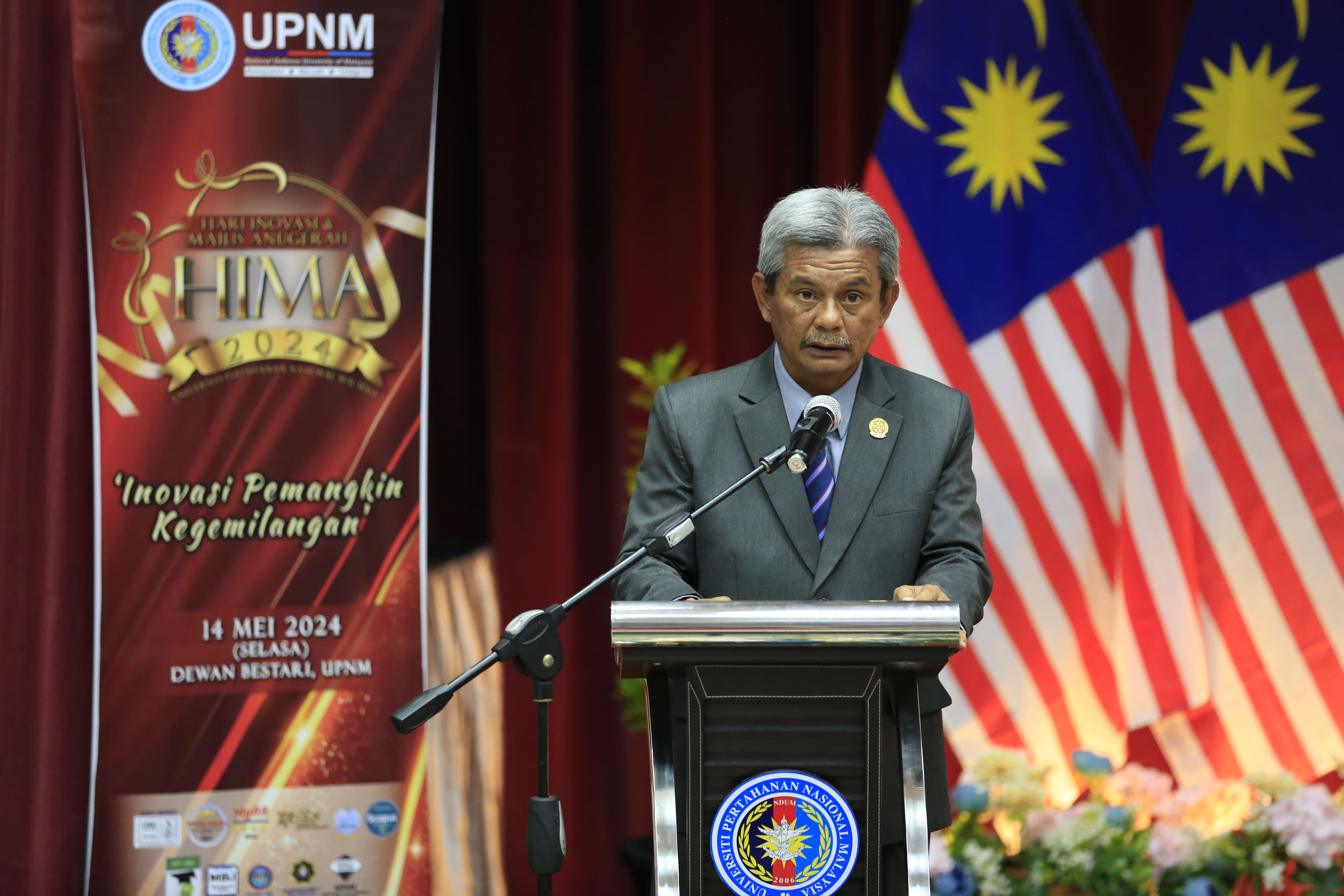Hari Inovasi dan Majlis Anugerah (HIMA) 2024 telah dilaksanakan pada 14 Mei 2024 (Selasa) bertempat di Dewan Bestari, UPNM. HIMA 2024 bertemakan Inovasi Pemankin Kegemilangan merupakan acara di bawah anjuran Bahagian Jaminan Kualiti dan Pengurusan Data (BJKPD).
