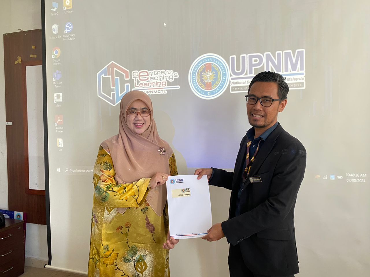 Hari kedua Kursus Asas Pengajaran dan Pembelajaran 2024 telah berlangsung dengan lancar pada 6 Ogos 2024. Sesi pertama dimulakan oleh Profesor Madya Ts. Dr. Norshahriah binti Abdul Wahab, Pengarah CTL UPNM, dengan tajuk "Hyflex, Massive Open Online Course, Micro-Credentials and Hybrid Learning" Sesi kedua diteruskan oleh Dr. Norzaura binti Abd Rahman, Timbalan Pengarah Bahagian Jaminan Kualiti dan Pengurusan Data UPNM, yang membincangkan topik "Data Quality" Sesi terakhir pada hari kedua disampaikan oleh Prof. Madya Dr. Mohd Shakir bin Md Saat dari Universiti Teknikal Malaysia Melaka (UTeM) dengan tajuk "Technical and Vocational Education Training (TVET) and Experiential Learning and Competency-based Education Landscape (EXCEL)" Penghargaan diberikan kepada para penceramah atas perkongsian ilmu yang sangat bermanfaat.