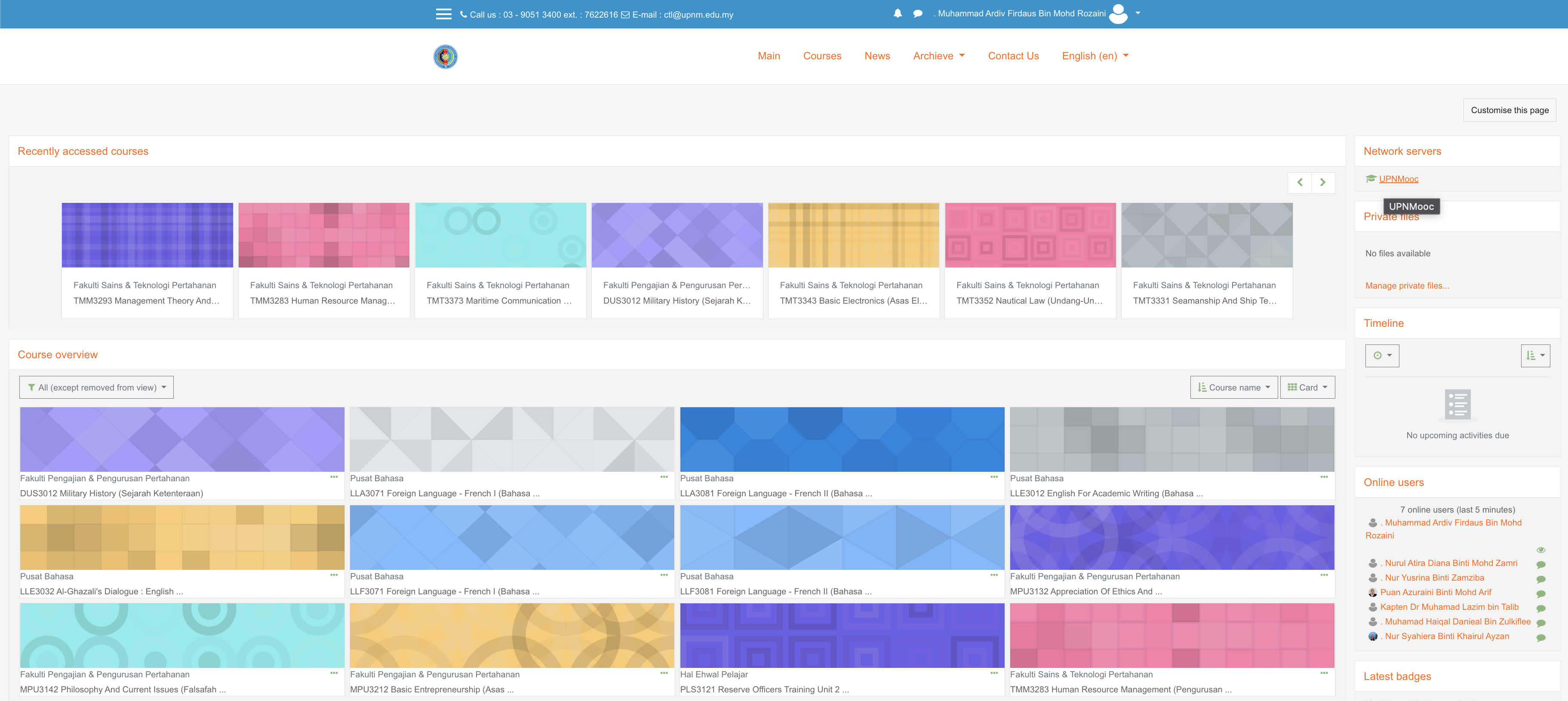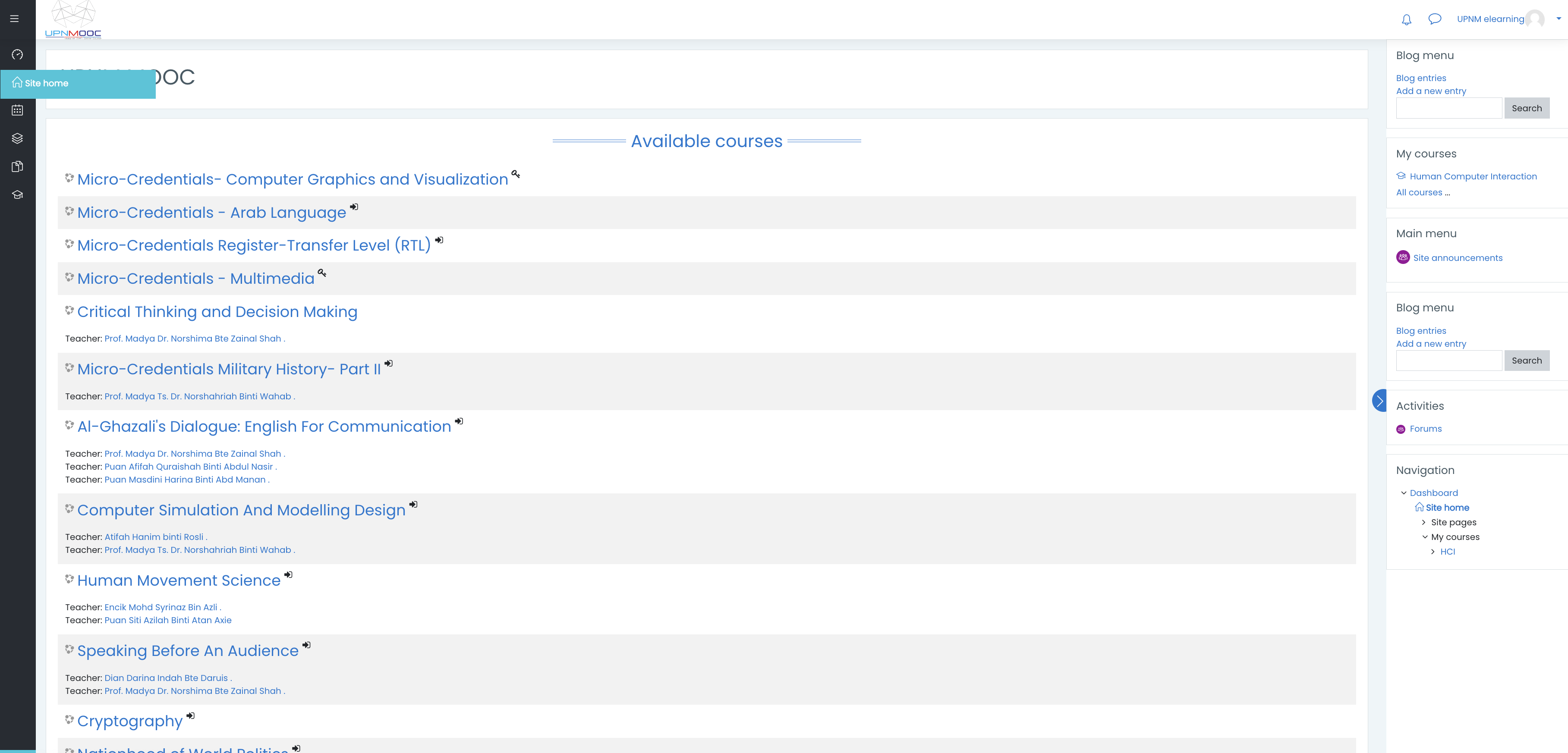 - Kemudian, klik menu Site home untuk mengakses senarai MOOC dan MC UPNM.